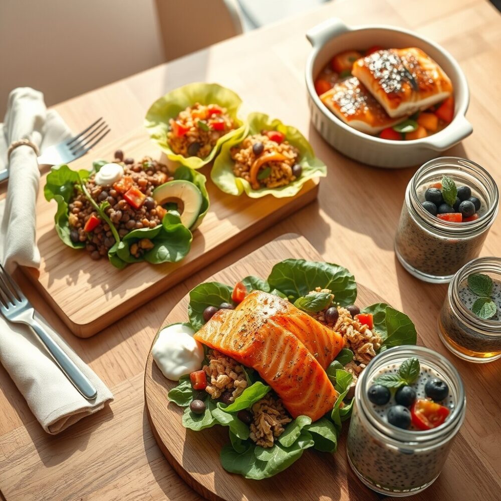 Consejos prácticos: Usa lentejas cocidas al dente para mantener textura. El salmón aporta ácidos grasos omega-3 que benefician el perfil metabólico.