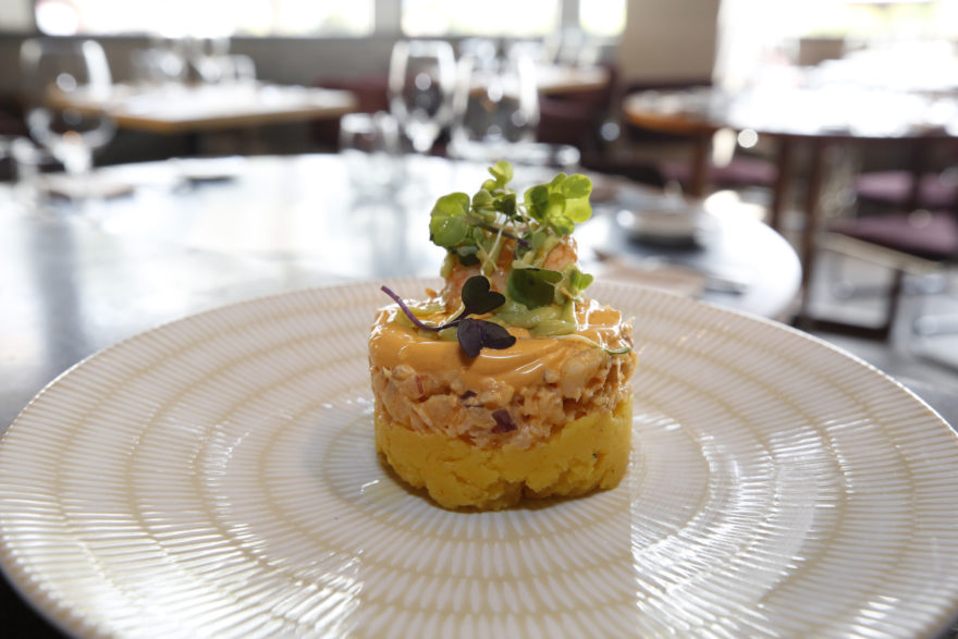 “Causa limeña de mariscos al pil pil”
