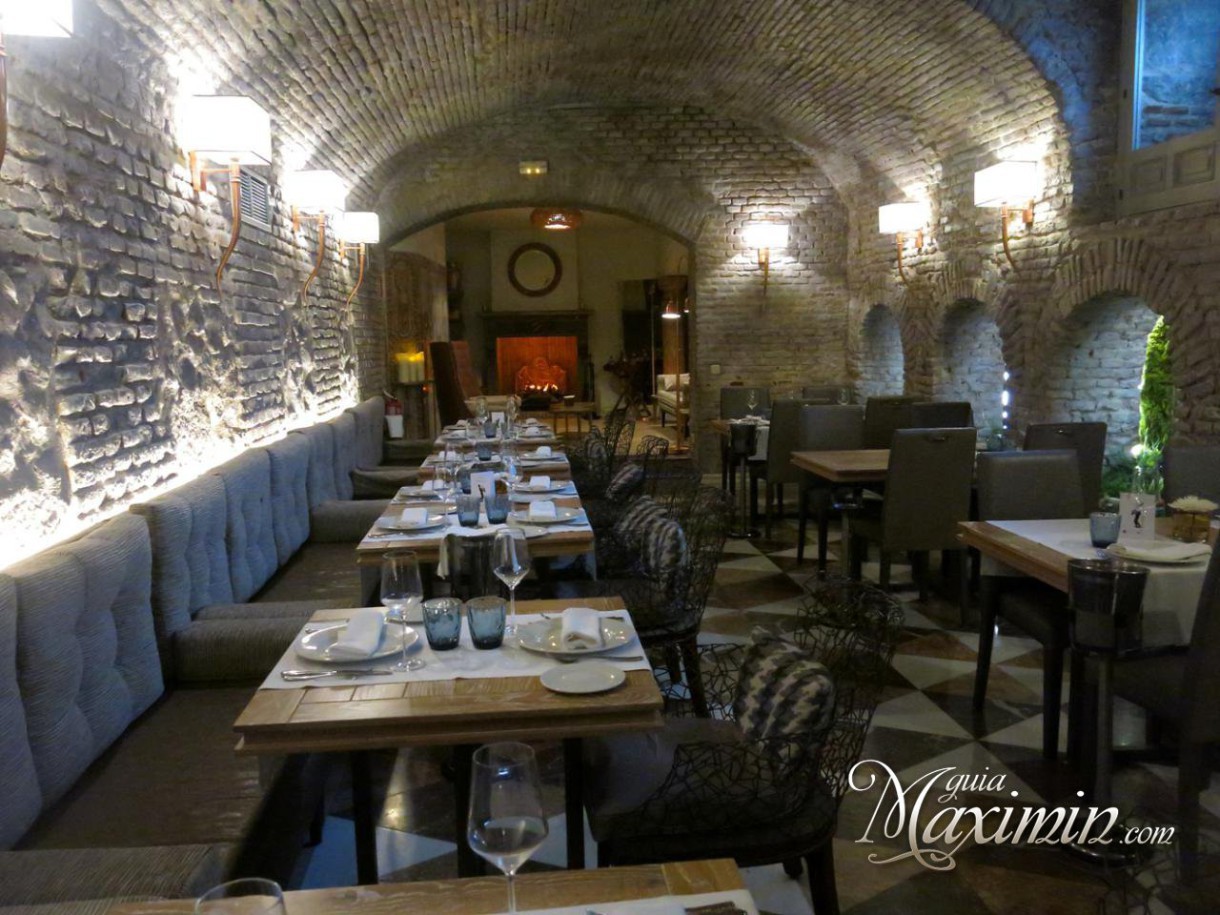 Llegamos al Salón San Gil, el restaurante propiamente dicho, con una «decoración» en la parte de los arcos donde nos recuerdan que todos los productos son frescos y de temporada, pues las verduras y hortalizas se encuentran al alcance de la mano. Al fondo del mismo un salón con chimenea y los mejores asientos por si apetece esperar a algún compañero de mesa o sentirse relajado en este ambiente tranquilo y selecto.