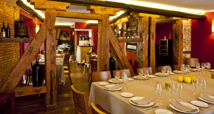 Y por último, ¡las dulces! ¿Alguna vez has probado una de Chocolate y kikos con naranja sanguina? ¿Y de Tarta de queso con frutos rojos y sopa de mango? Pues parece que ha llegado el momento… Todo ello se puede disfrutar en una gran variedad de espacios, que representan, al igual que su cocina, el paso del tiempo y de las modas, tanto con aire castizo como de lo más vanguardista y puede albergar hasta casi 200 comensales. Los reservados El Refugio (22 personas) y El Altillo (12), ambos resultan acogedores, sencillos, vestidos en blanco y con apenas ornamentos; el Salón Ávila (50) que representa el ambiente castellano más puro a través de la madera, cuadros y cerámicas inspirados en Don Quijote de la Mancha; el Salón Duque testigo de la última reunión de la Generación del 27, con capacidad para 55 comensales y con los techos labrados; la Bodeguilla (40) que traslada a una antigua y auténtica cava y el Imperial, con 50 asientos. Además de contar con dos terrazas que permanecen abiertas todo el año y una barra perfecta para una comida informal. El precio medio en la barra es de 15 € y en el restaurante a la carta de 40 €.
