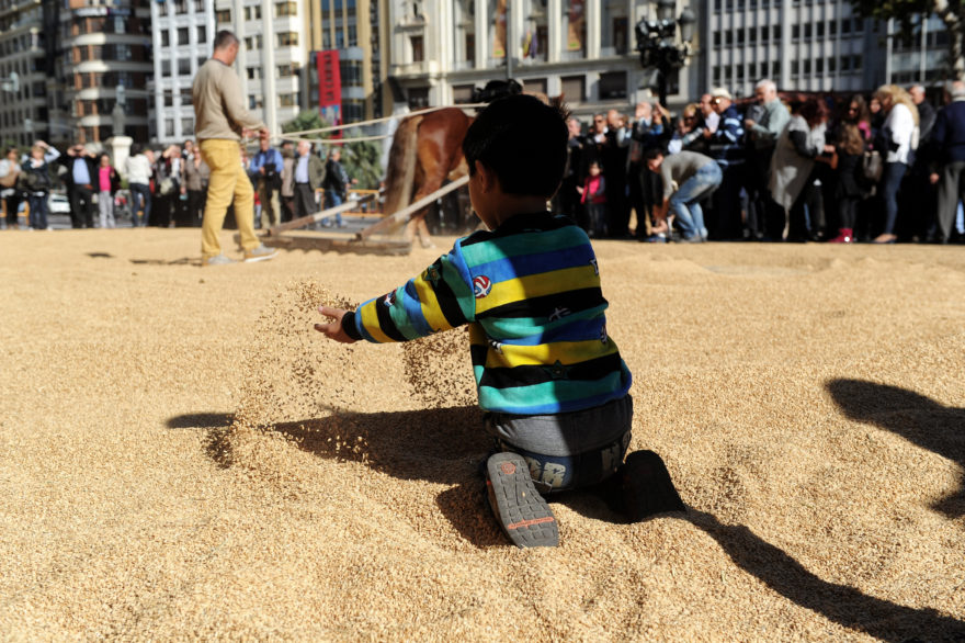 Hasta un total de veinticinco prestigiosos restaurantes, entre ellos algunos galardonados con dos Estrellas Michelin y cuatro Soles Repsol, participaron en esta iniciativa organizada por la D.O. Arroz de Valencia y que dió comienzo con la presentación del ya tradicional Sequer Urbà, que convirtió parte de la plaza en un gran sequero donde se secaron 10.000 kilos de arroz con la ayuda de animales.