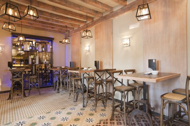 Al estar situado en una ubicación tan céntrica, zona de tapeo, no podía faltar una zona de barra con mesas altas, donde vamos a encontrar un abanico de tapas y raciones para compartir. Los quesos, los productos ibéricos, croquetas (con sus cinco variedades destacando las de cordero confitado), ensaladas, tostas, … pero hay más.
