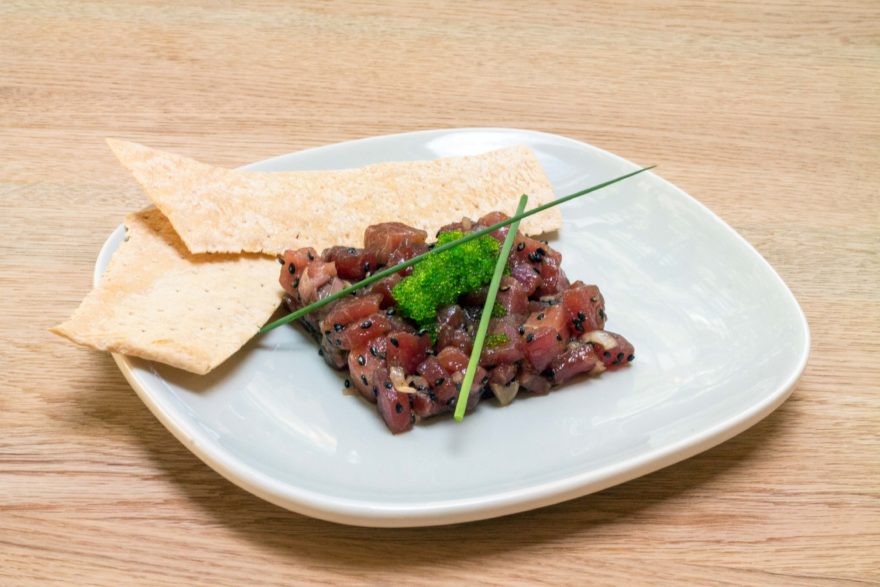 Tartar de atún rojo con huevas de tobiko wasabi y sésamo negro