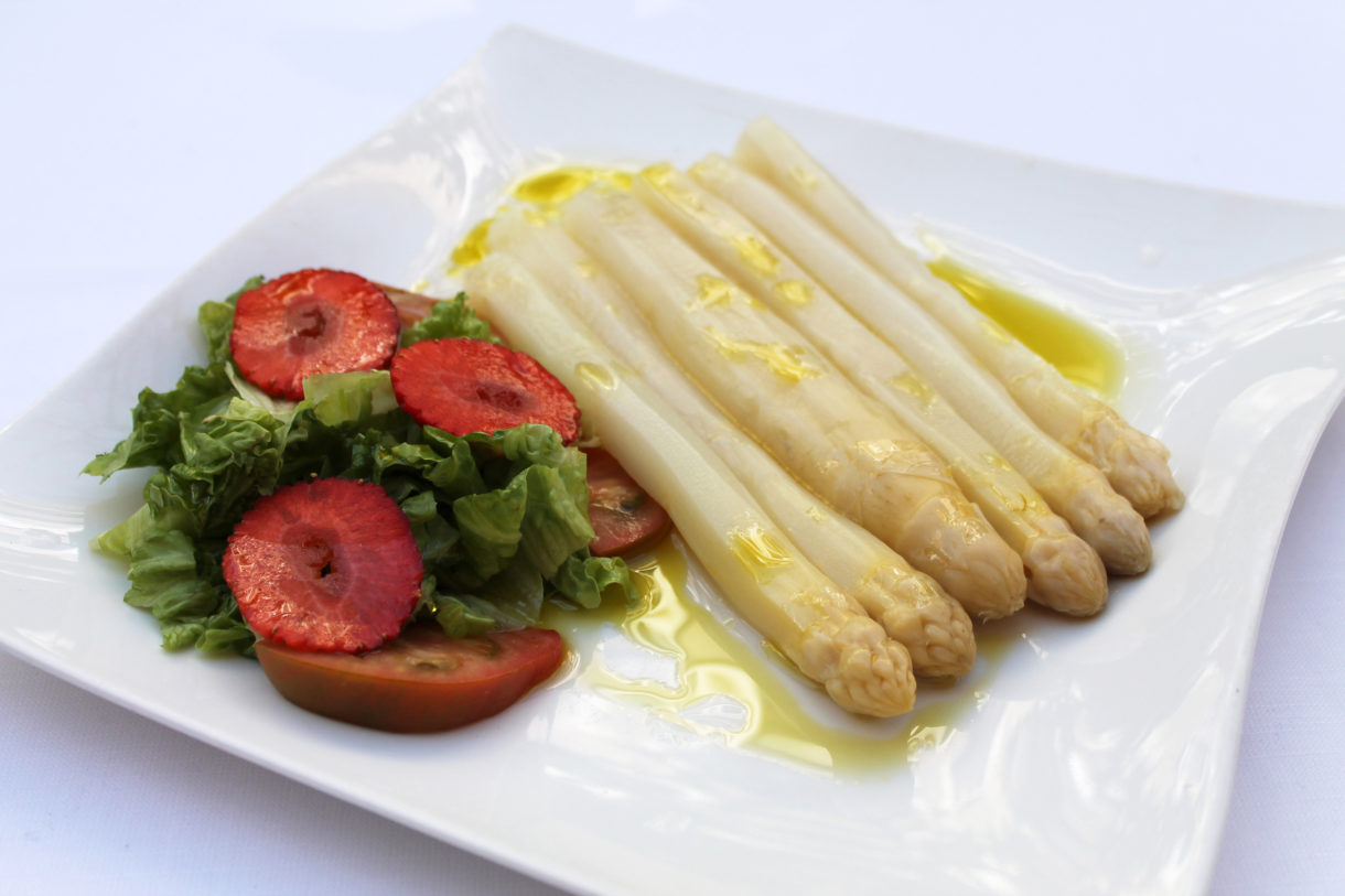 Junto a estas delicias micológicas, un auténtico homenaje a las verduras ‘patrias’, y es que en esta ahora la huerta también está en pleno apogeo y casi casi, se ‘planta’ en el 42 de Jorge Juan. María Luisa las manipula lo justo, ya que su sabor en sí mismo es maravilloso y si se saben acompañar del producto adecuado… el plato se convierte en una auténtica delicia. Ella propone creaciones como las Alcachofas de Tudela con foie al PX y boletus, los Espárragos de Tudela de Duero -espectaculares- con su guarnición, los Guisantes del Maresme con su huevito, los Trigueros a la plancha… Sin duda están bien combinados.