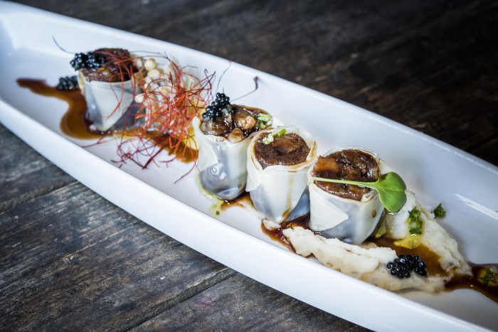 Modifica el concepto de la carta pues ofrece una diferente a la norma, que no se divide por ‘fases’, sino que se puede alternar y comer en cualquier orden y sobre todo, que es muy apetecible para compartir y picar. Oribu pretende darle otro matiz al término ‘fusión’, ir un paso más allá… Se trata de cocina con base japo-asiática con toques chinos y del sudeste asiático, influencias peruanas, mexicanas… y un trasfondo de técnicas mediterráneas que asoma en creaciones tan completas y complejas como los Tacos japo-gaditanos de camarones, wakame-guacamole y wasabi-crema.