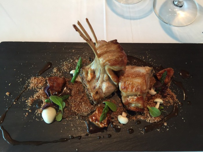 •Carré de cordero, tierra de chantarella y brotes tiernos. 23,59€
