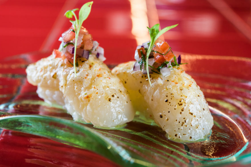 El otro es un menú tipo cóctel, pensado para más de 20 personas, con bocados que saben a fusión e incluyen hits como su Tiradito de salmón, el Ceviche clásico y una selección de sushi variado. Las otras dos opciones, para grupos más reducidos (mínimo dos personas), son de 45 o 49 € respectivamente y ambos terminan por todo lo alto con su Alfajor cremoso de chocolate, helado de lúcuma y dulce de leche.