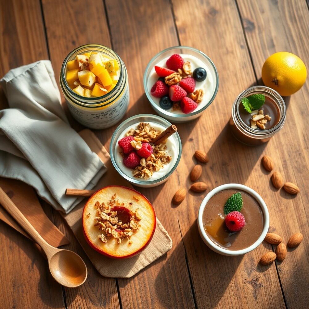 Alimentación saludable #consejos culinarios #ingredientes naturales #manzana asada #mousse de aguacate #postres light #postres saludables #pudding de chía #recetas bajas en calorías #yogur con fruta