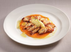 Pulpo braseado, patata ahumada y emulsión de tomate