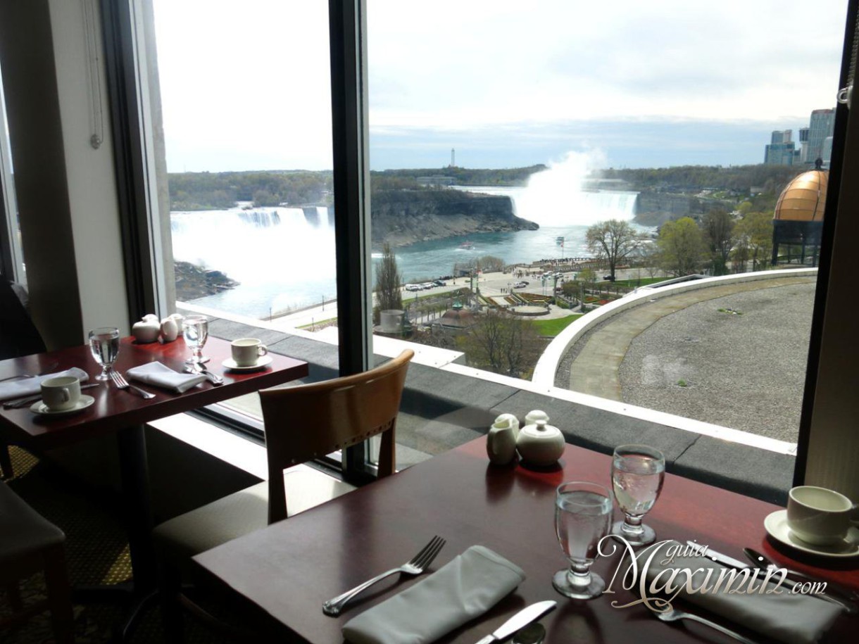 Seguro que llegáis a Niágara a presenciar estas maravillas de la naturaleza que son las cataratas, un viaje donde en cada momento nos sorprende la belleza de este país, donde se "vive" la naturaleza. Ya hablaremos de la belleza de las cataratas en otro momento, hoy os queremos recomendar un restaurante ideal, muy correcto, en formato buffet por lo que queda resuelto de paso cualquier problema con el idioma, pues estás viendo los platos que te puedes servir. Y con unas maravillosas vistas de las cataratas, pues se encuentra situado en la 10ª planta del edificio.