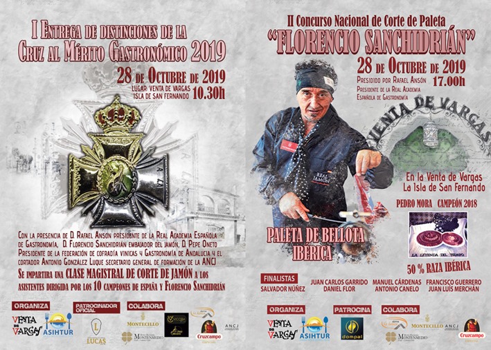 El premio al embajador del mejor producto español no podía ser menos que a Florencio Sanchidrian, campeón mundial de corte de jamón desde hace varios años y por tanto, embajador español. La I Cruz de Oro al Mérito Turístico le será entregada por Rafael Ansón, Presidente de la Real Academia Española de Gastronomía. El lugar, donde se mezclan el flamenco y el jamón, la Venta de Vargas y la fecha el 28 de octubre a las 10,30.